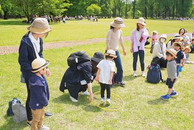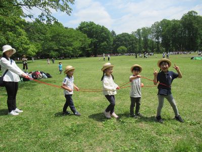 小金井公園へ行きました。気持ちのいいお天気の下、お友だちと、家族の方と、先生とゲームをしたり、たくさん遊んで楽しかったね。