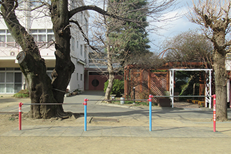 - 非常通報体制「学校110番」を設置しています。(非常通報ボタンを押すだけで自動緊急通報が警視庁指令本部に通じ、直ちに警察官に出動命令が出されるしくみ)