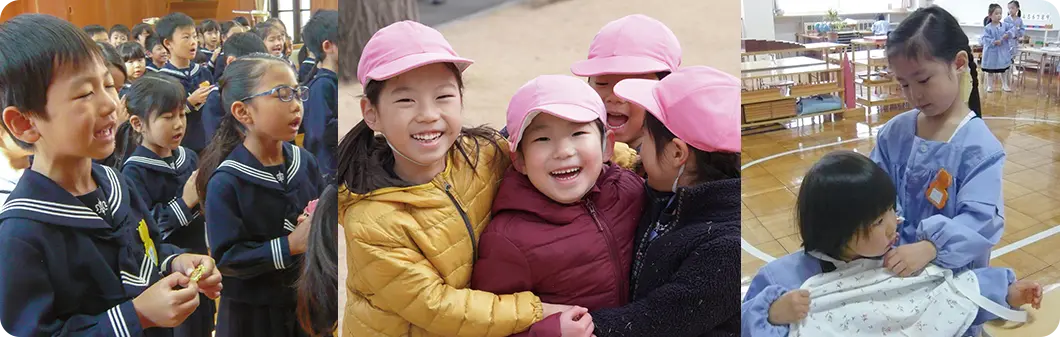 年上の子どもは、年下の子どものお世話を通して、個々の違いを知り思いやりと責任感が育まれます。互いの立場を尊重しあいながら協力し平和な心の基礎が構築されていきます。