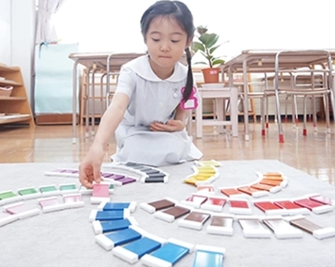 - 本園はモンテッソーリ教育に基づいて、幼稚園教育要領で示されている健康、人間関係、環境、言語、表現などの領域にわたって総合的指導を行っています。
